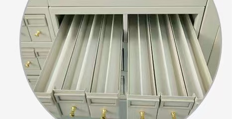 本产品为4个箱体,每个箱体18个抽屉,共72个抽屉,每个抽屉可放标准玻片700张,可放标准切片50000张以上,可负载900公斤。每个抽屉可自由互换,抽屉内为ABS中隔板,滑道采用ABS成型标准滑道,箱体框架折边处满焊打磨无毛刺,且每层柜体均有加强筋、抽屉的防脱落保护装置及水平调节装置;抽屉前面有目录卡,在装满玻片情况下,抽屉抽拉轻巧无噪音、不变形。如需了解更多切片柜及蜡块柜规格请来电咨询!